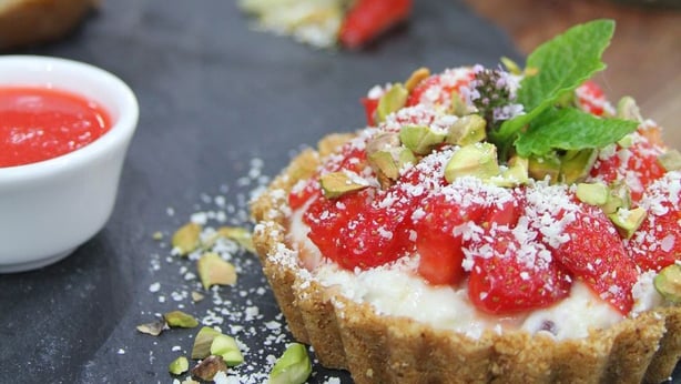 Tarte aux fraises, ricotta, pistaches et chocolat blanc