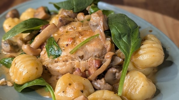 Le poulet aux champignons crémeux de Kevin Dundon et les gnocchis