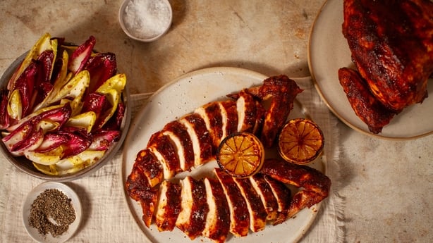 Poulet Piri-Piri avec citron carbonisé et chicorée