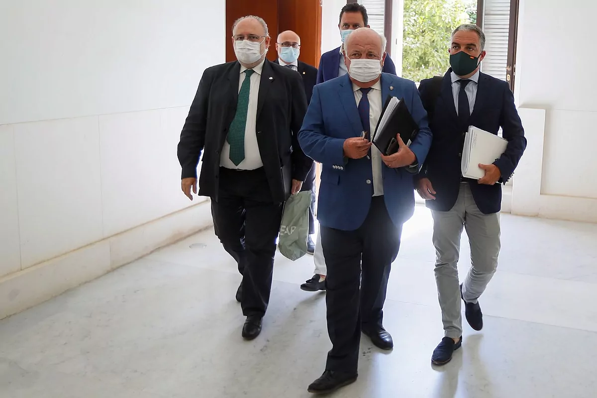 Le Ministre de la Santé, Jess Aguirre, suivi du Ministre de la Présidence, Elas Bendodo, et ses collaborateurs.