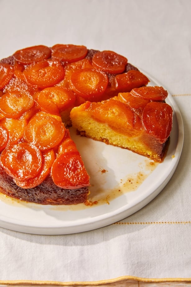 « Idéal pour les réunions de famille, servez-le avec de la crème fraîche pour une délicieuse gâterie. La saison des abricots est très courte au Royaume-Uni, nous utilisons donc des abricots en conserve pour cette recette, mais des abricots frais dénoyautés seraient également délicieux », explique Berry. « La garniture ne fonctionne pas aussi bien dans une poêle antiadhésive, il est donc préférable d'utiliser de l'acier inoxydable.