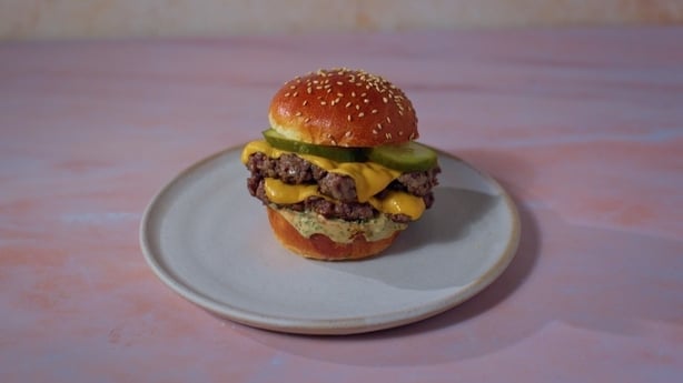 Smash Burger avec des cornichons faits maison et des pains de hamburger