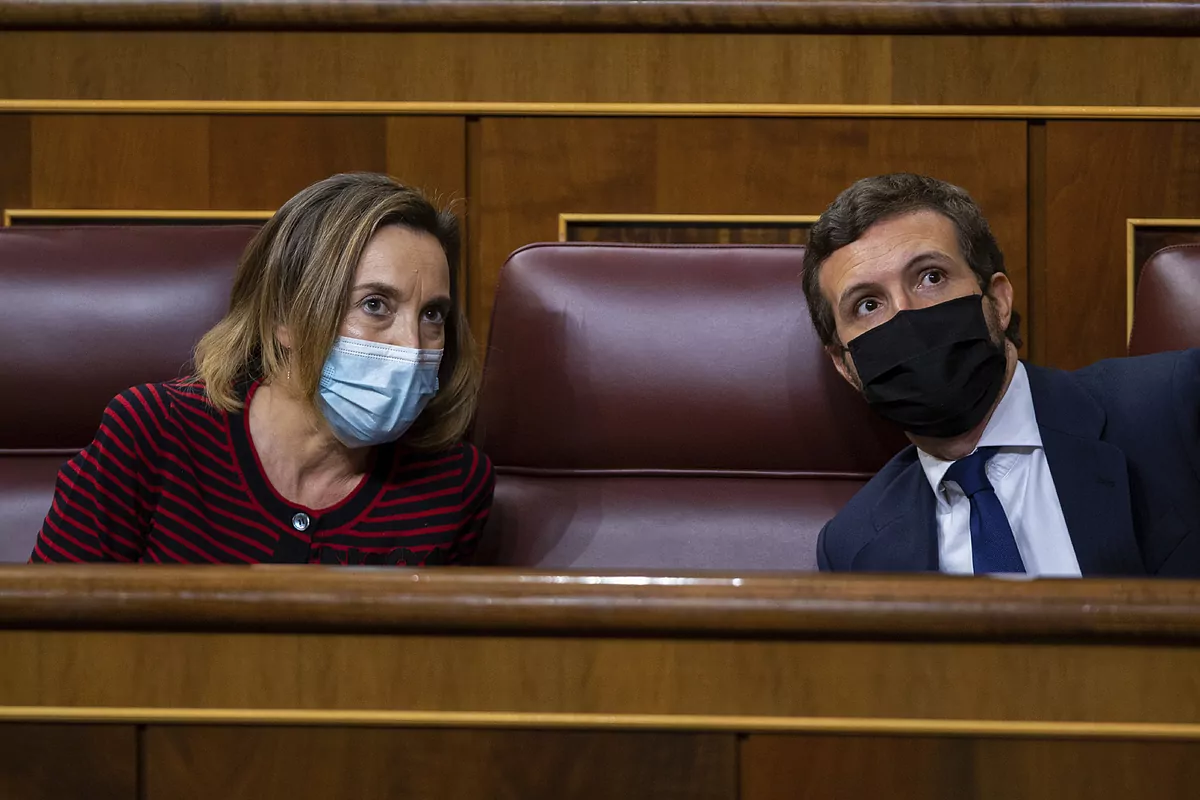Pablo Casado, chef du PP, et Cuca Gamarra, porte-parole parlementaire, au Congrès.