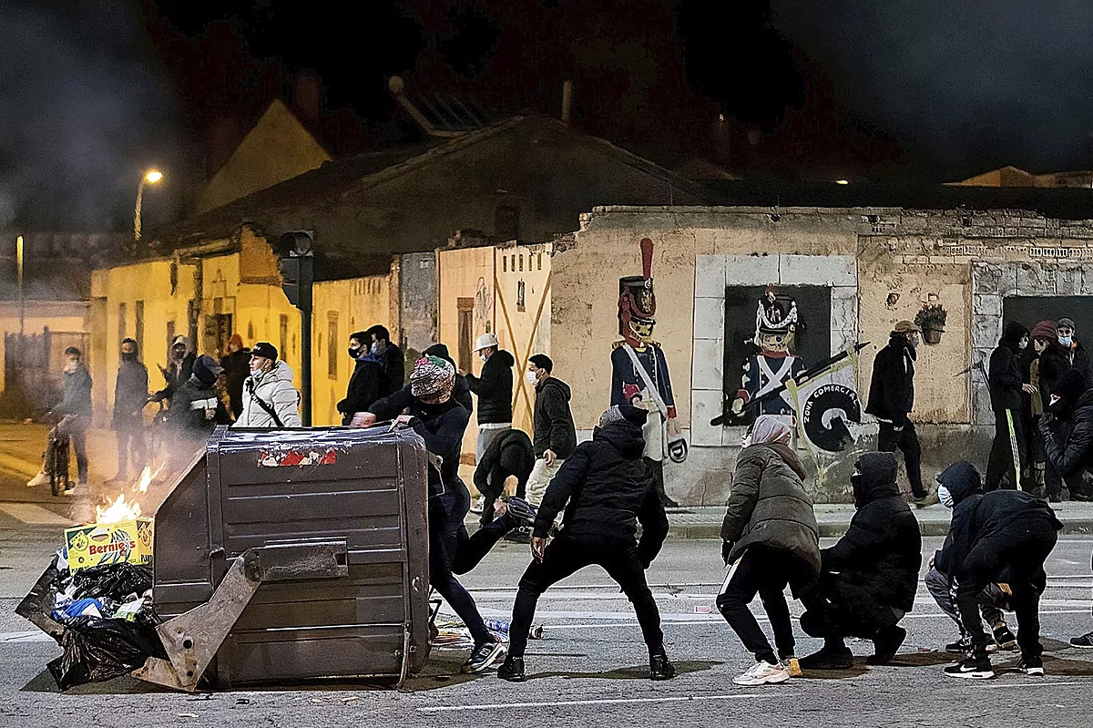 Avec presque tout le pays confiné, les altercations se sont intensifiées: Barcelone, de nouveau; Saragosse, Valence, Santander et, avec une virulence particulière, en le quartier Gamonal de Burgos. Samedi, la marée s'est propagée à Vitoria, Logroo et a atteint Madrid, où le poste de police de Leganitos a été attaqué, avec Gran Va. Il y a même eu la condamnation du Premier ministre, qui a blâmé les «groupes minoritaires».