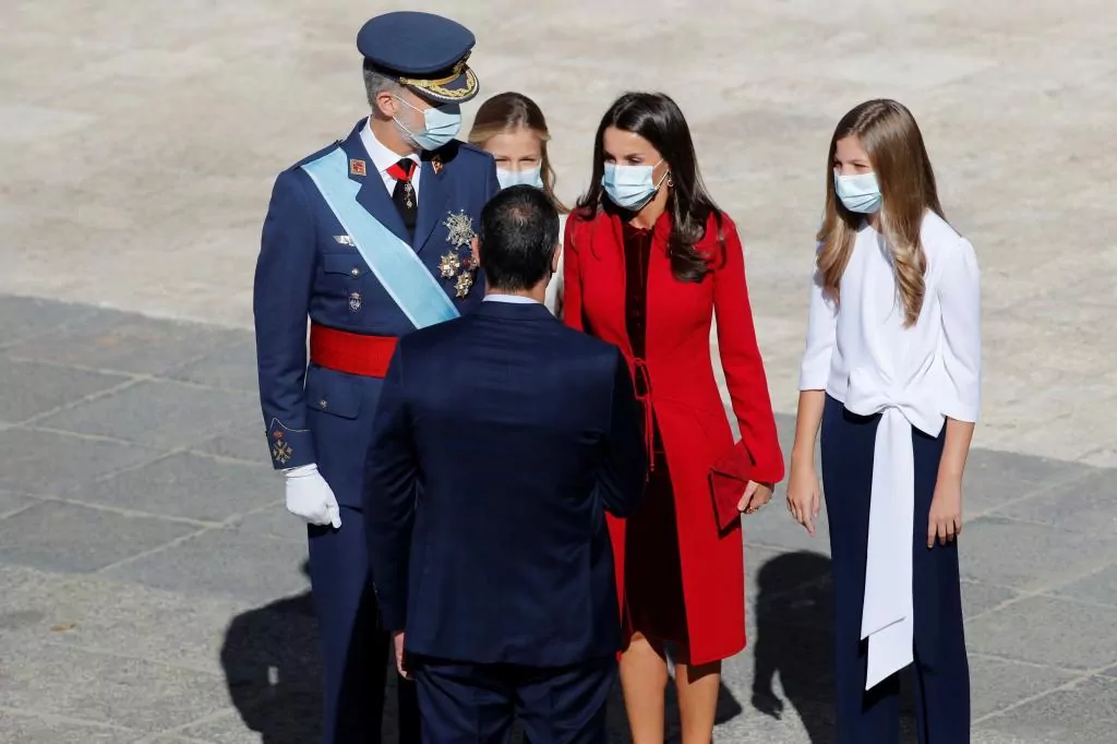Les actes ont été présidés par les rois avec la princesse des Asturies et le canapé Infanta. L'événement a été réduit par la sécurité avant les effets du Covid. Il consistait traditionnellement en une importante parade militaire à laquelle assistaient des milliers d'Espagnols sur le Paseo de la Castellana. A cette occasion, un défilé discret dans le Patio de Armas du Palais Royal.