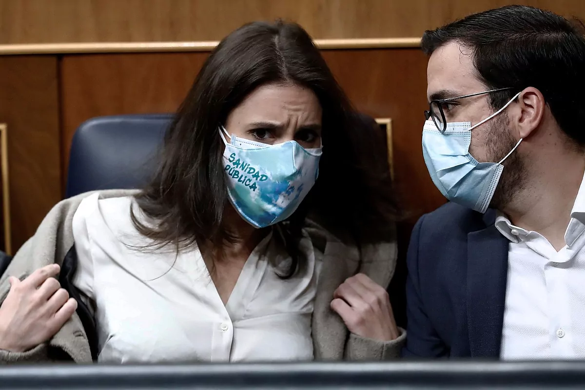 Le ministre de l'Égalité, Irene Montero, et le ministre de la Consommation, Alberto Garzn, au Congrès.