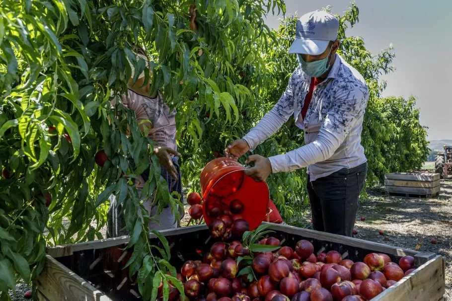 Un saisonnier travaille à ramasser des fruits à Zaid