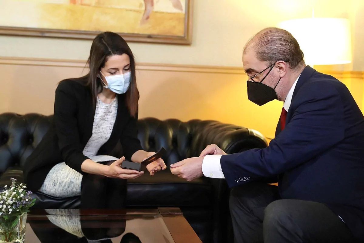 Le président aragonais, Javier Lambn, et le président du Cs, Ins Arrimadas, ce jeudi, à Saragosse.