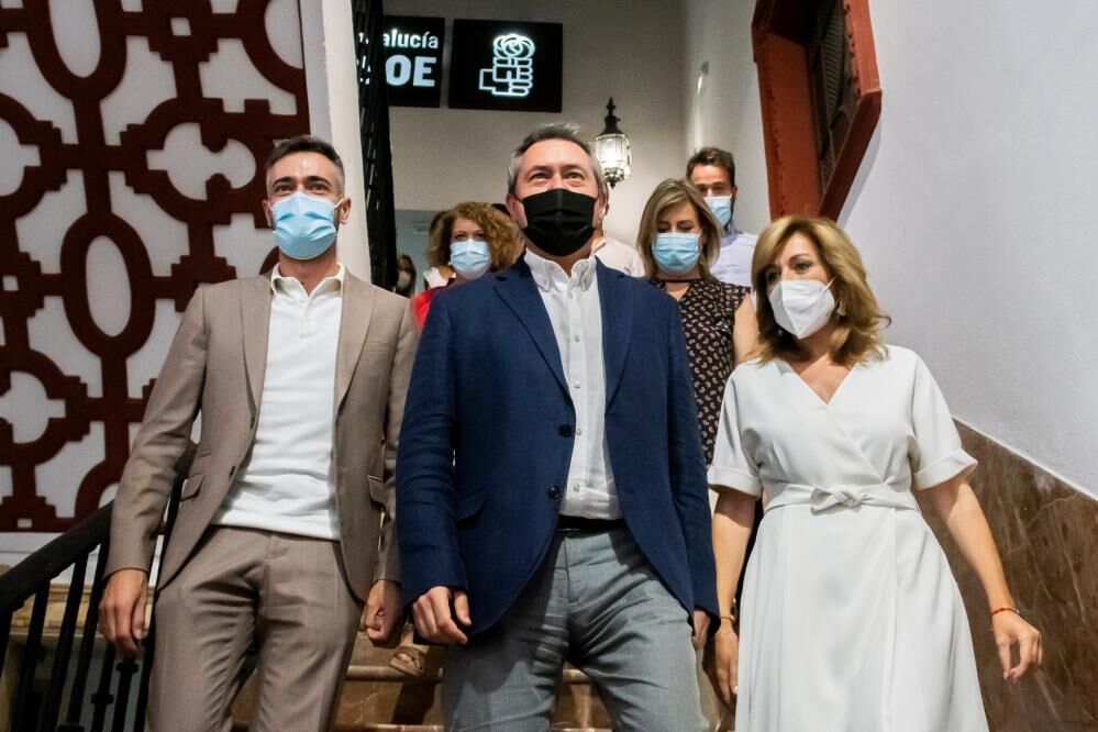 Le déjà secrétaire général du PSOE-A, Juan Espadas, entouré de son équipe, avec Felipe Sicilia à sa gauche.