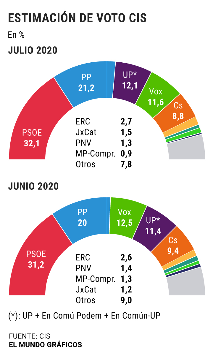 La CEI indique en outre une baisse des prévisions pour les citoyens. Si vous lui donnez une prévision de 9,4% en juin, il est maintenant abaissé à 8,8%. En tout cas, deux points de plus que ce qui a été réalisé dans les urnes de novembre. De ces données, il est déduit que le des oranges Ils ont peut-être subi une certaine punition de la part de leurs électeurs après leurs pactes ponctuels mais récurrents avec le gouvernement.