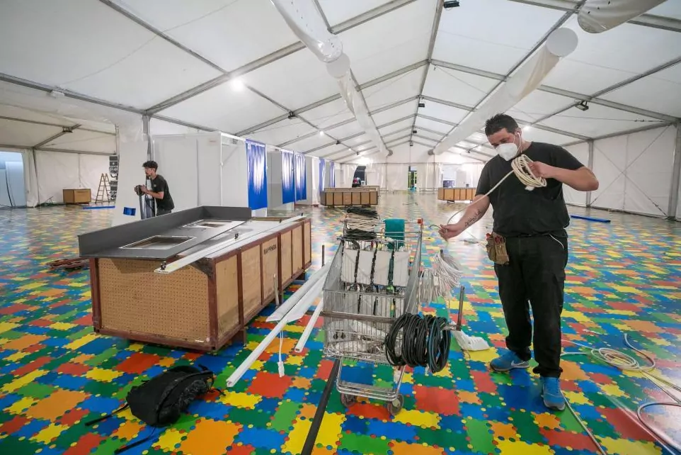 Desmontaje del hospital de campaa instalado en el auditorio de Zaragoza para hacer frente al coronavirus.
