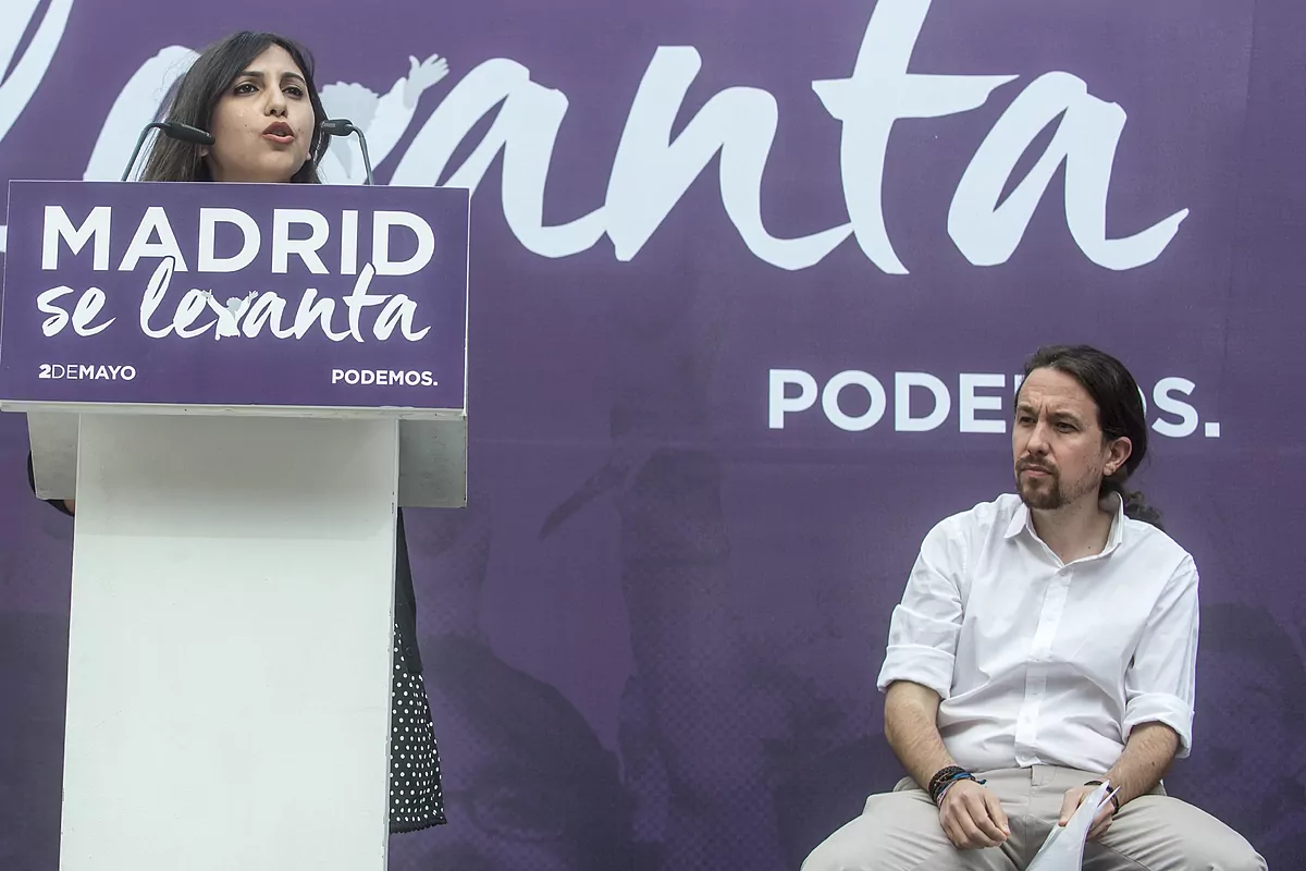 Dina Bousselham et Pablo Iglesias, lors d'un événement de Podemos tenu à ...