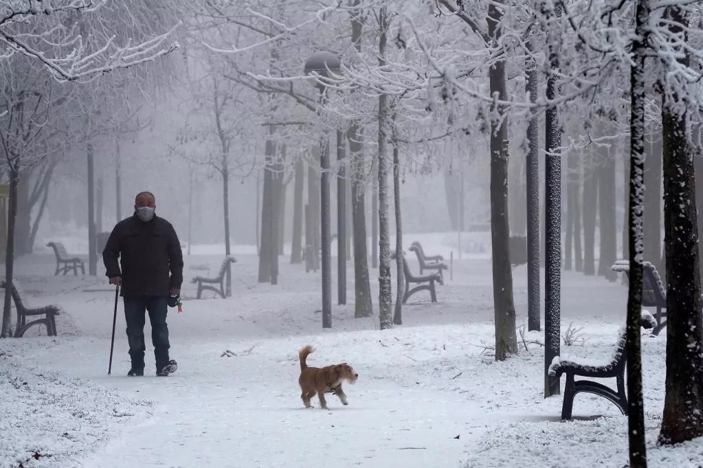 Un voisin se promène ce jeudi dans un parc enneigé à Valladolid