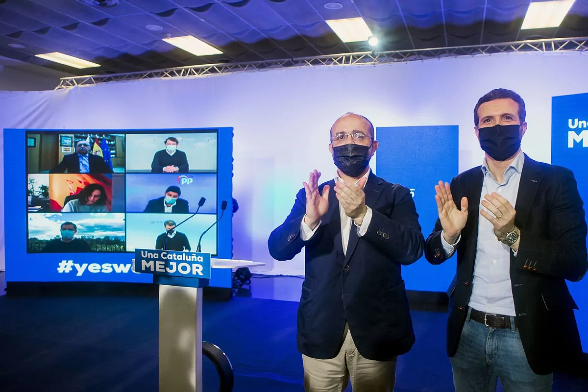 Le chef du PP, Pablo Casado, et le candidat à la Generalitat, Alejandro Fernndez.