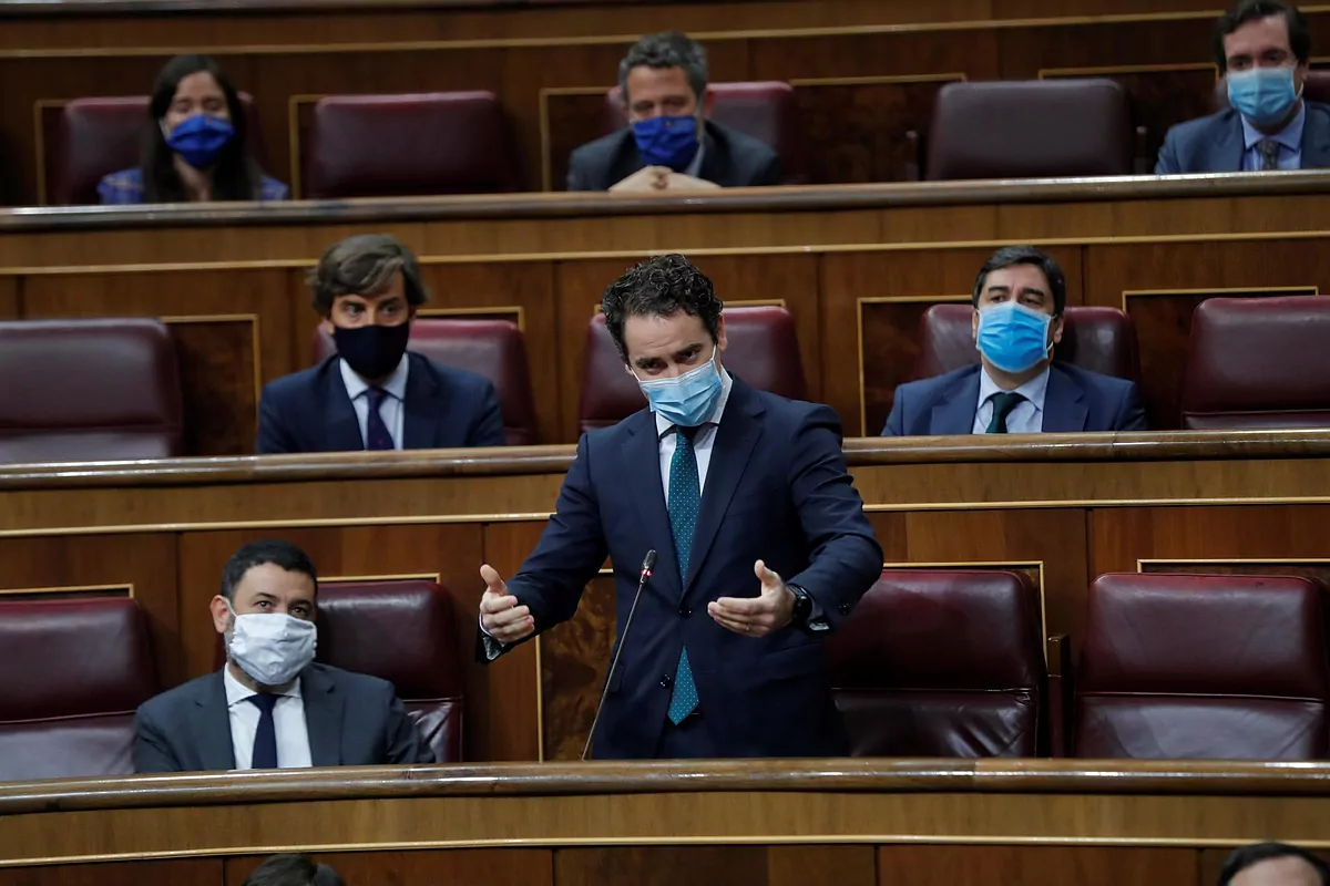 Le secrétaire général du PP, Teodoro Garca Egea, lors de son intervention dans la séance de contrôle à l'exécutif.