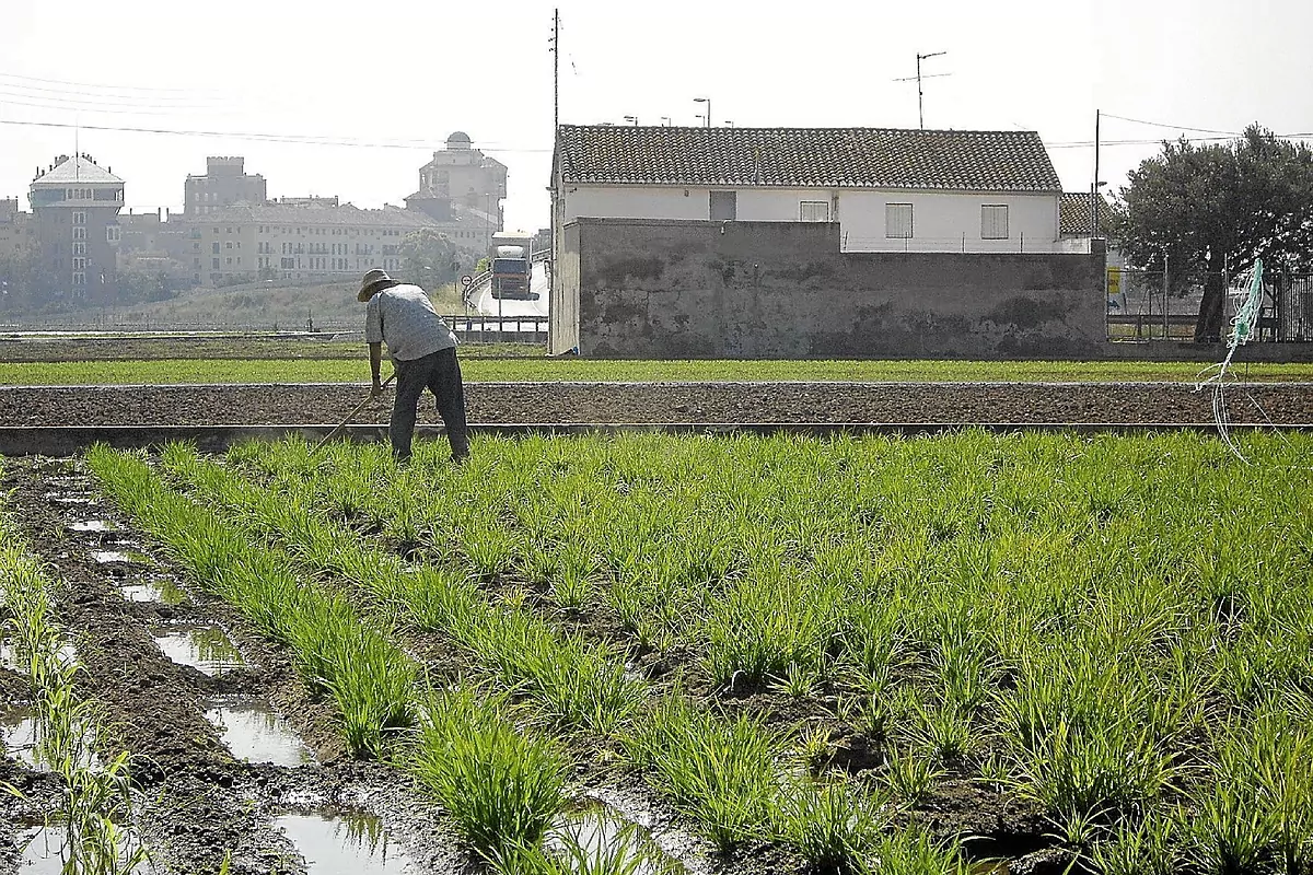 Un agriculteur récolte le tigernut dans le jardin d'Alboraya (Valence).
