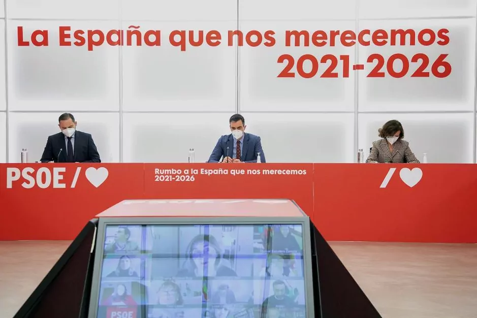 Jos Luis Balos, Pedro Sanchez et Carmen Calvo, lors de la réunion de l’exécutif fédéral du PSOE.