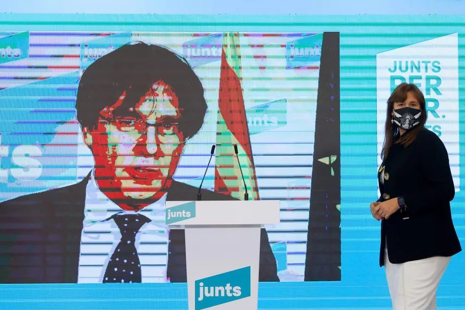 Carles Puigdemont participe par visioconférence à la conférence de presse de Laura Borrs après les résultats du 14-F.