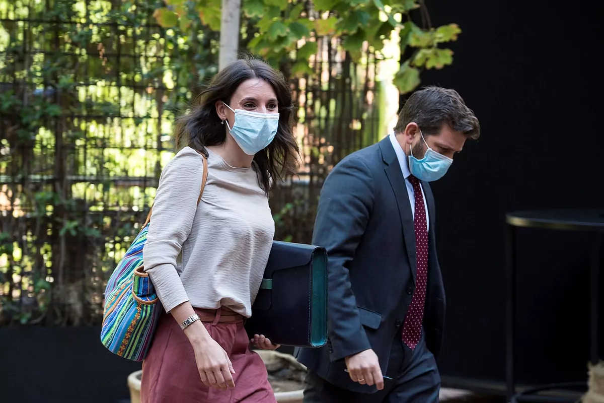 La ministre de l'Égalité, Irene Montero, à son arrivée à la conférence du président du gouvernement, Pedro Sánchez, le 31 août.