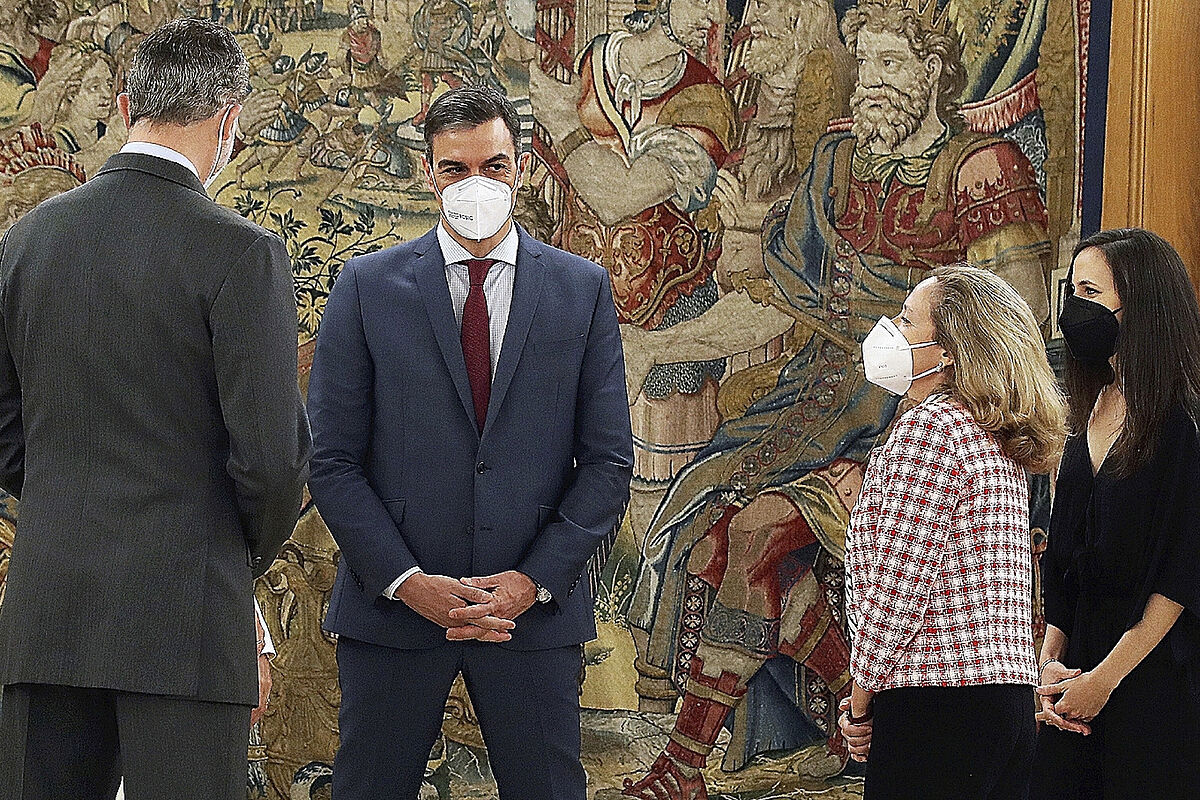 Pedro Snchez s’entretient avec Felipe VI, Nadia Calvio et Ione BelarraBASSIN