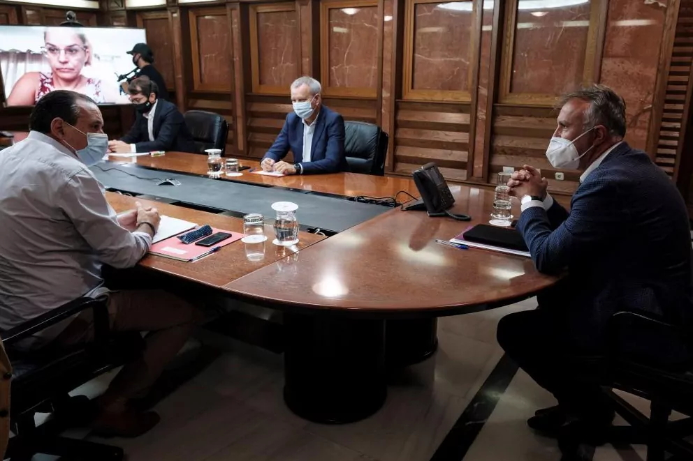 Le président des îles Canaries, Angel Vctor Torres (à droite), lors de la réunion de l'exécutif régional.
