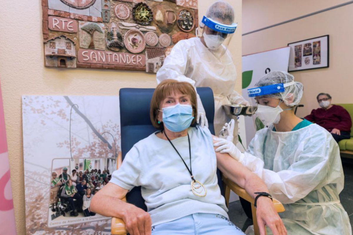 Mara Dolores Luzuriaga, une utilisatrice du Cueto Dependency Care Center (CAD), a reçu le premier vaccin contre le coronavirus en Cantabrie à 11h30. Le moment historique a été interrompu par les applaudissements du personnel de la résidence lorsque Mara Dolores a reçu le vaccin.
