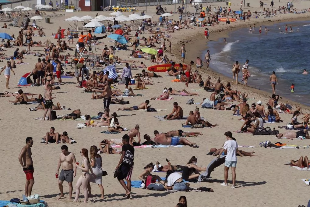 Des dizaines de personnes sur une plage de Barcelone la semaine dernière.