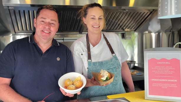 Au Coastguard Cultural Centre de Tramore, Neven se rend au Little Catch Seafood Truck où le chef Denise Darrer prépare des rouleaux de homard et des boulettes d'arancini à l'aiglefin fumé.