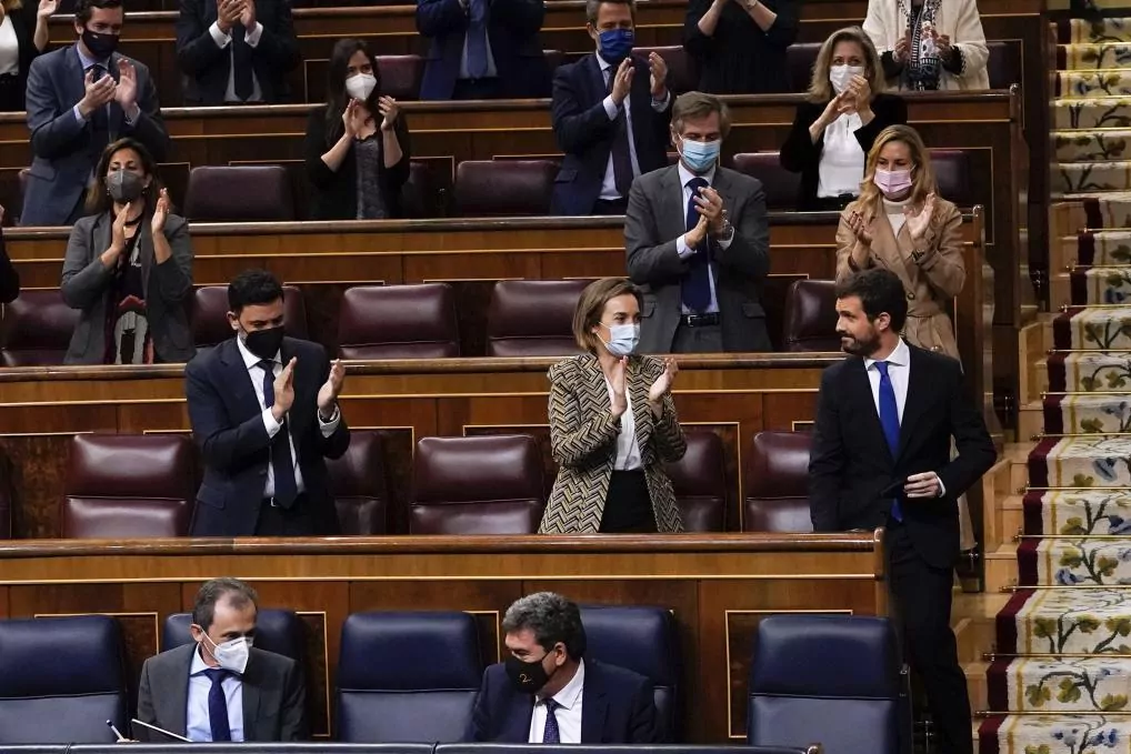 Le leader du PP, Pablo Casado, après avoir pris la parole au Congrès.