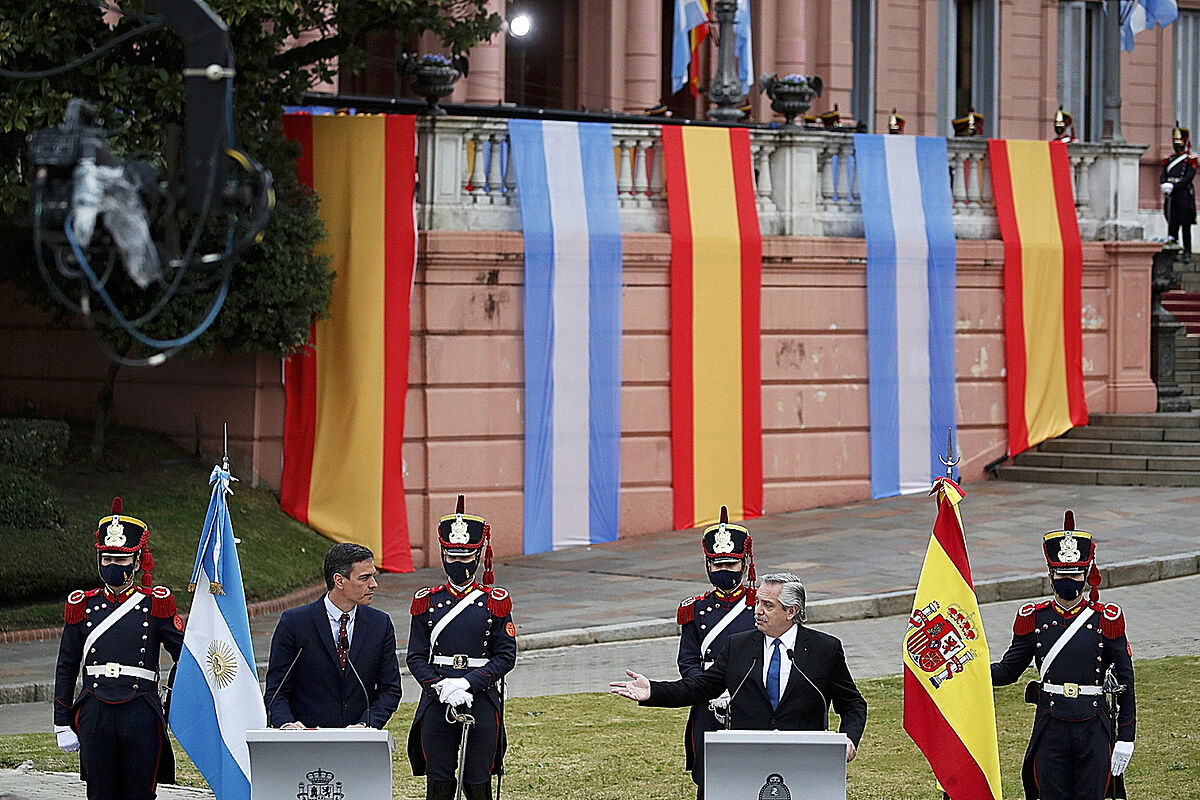 Après le profond impact que la pandémie a eu dans toute la région, l’Espagne s’offre comme une bouée de sauvetage. Snchez a profité de son voyage en Argentine pour s’offrir comme interlocuteur devant l’UE. Que vous voyez l’Espagne comme une porte d’entrée vers L’Europe , qui peut être un grand allié de ArgentineJe l’ai signalé hier. L’intention est de renforcer les relations commerciales et pour les entreprises espagnoles de consolider et d’étendre leurs investissements. L’Espagne est le deuxième investisseur dans le pays andin, derrière les États-Unis. Profitez du moment, a souligné Alberto Fernandez, s’adressant aux Espagnols et aux Argentins, car ils ont deux présidents qui pensent la même chose ; c’est une opportunité unique. Nous partageons un regard sur les problèmes et les défis auxquels le monde est confronté et l’engagement à travailler ensemble.