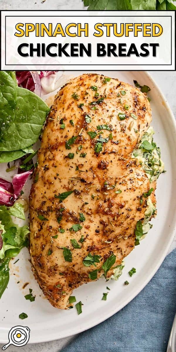 J'ai opté pour une simple salade d'accompagnement pour accompagner mes poitrines de poulet farcies aux épinards. C'était vraiment facile à préparer pendant que le poulet cuisait au four et contrastait joliment avec la garniture au fromage. Mais pour un repas plus copieux, je pense qu'ils seraient également délicieux avec du riz ou de la purée de pommes de terre en accompagnement !