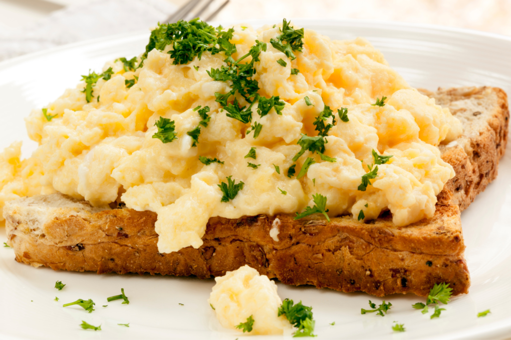 Des oeufs brouillés pour agrémenter les naans au fromage