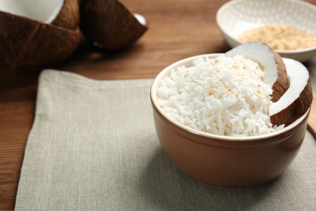 Le lait de coco en conserve, la coriandre et le jus de citron vert rehaussent le riz blanc nature.