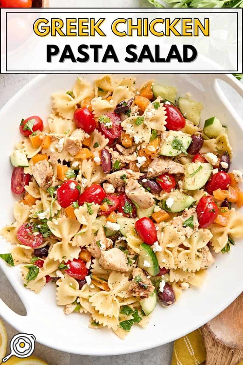 La salade de pâtes au poulet grec est le repas d'été parfaitement rafraîchissant et copieux avec son mélange de légumes et la vinaigrette à l'ail de citron acidulé.
