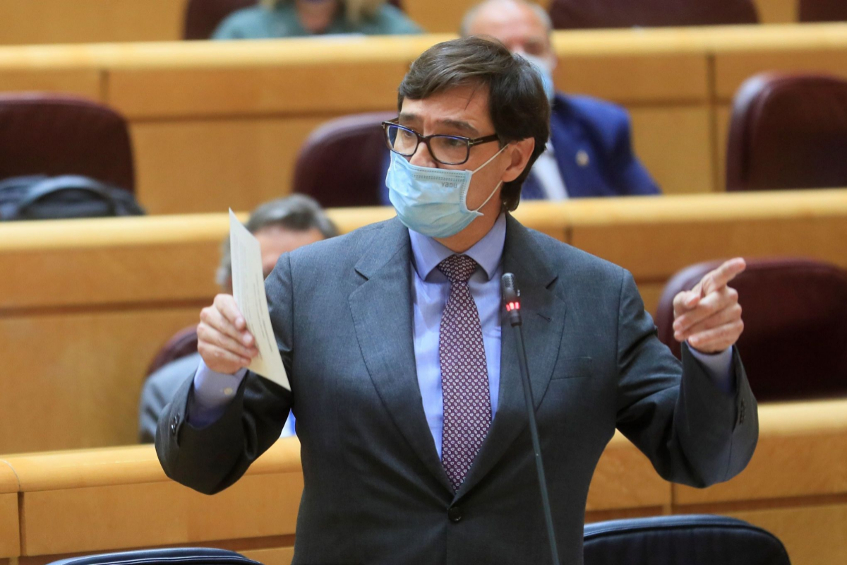 Le ministre de la Santé, Salvador Illa, ce mardi, en séance de contrôle du gouvernement, au Sénat.