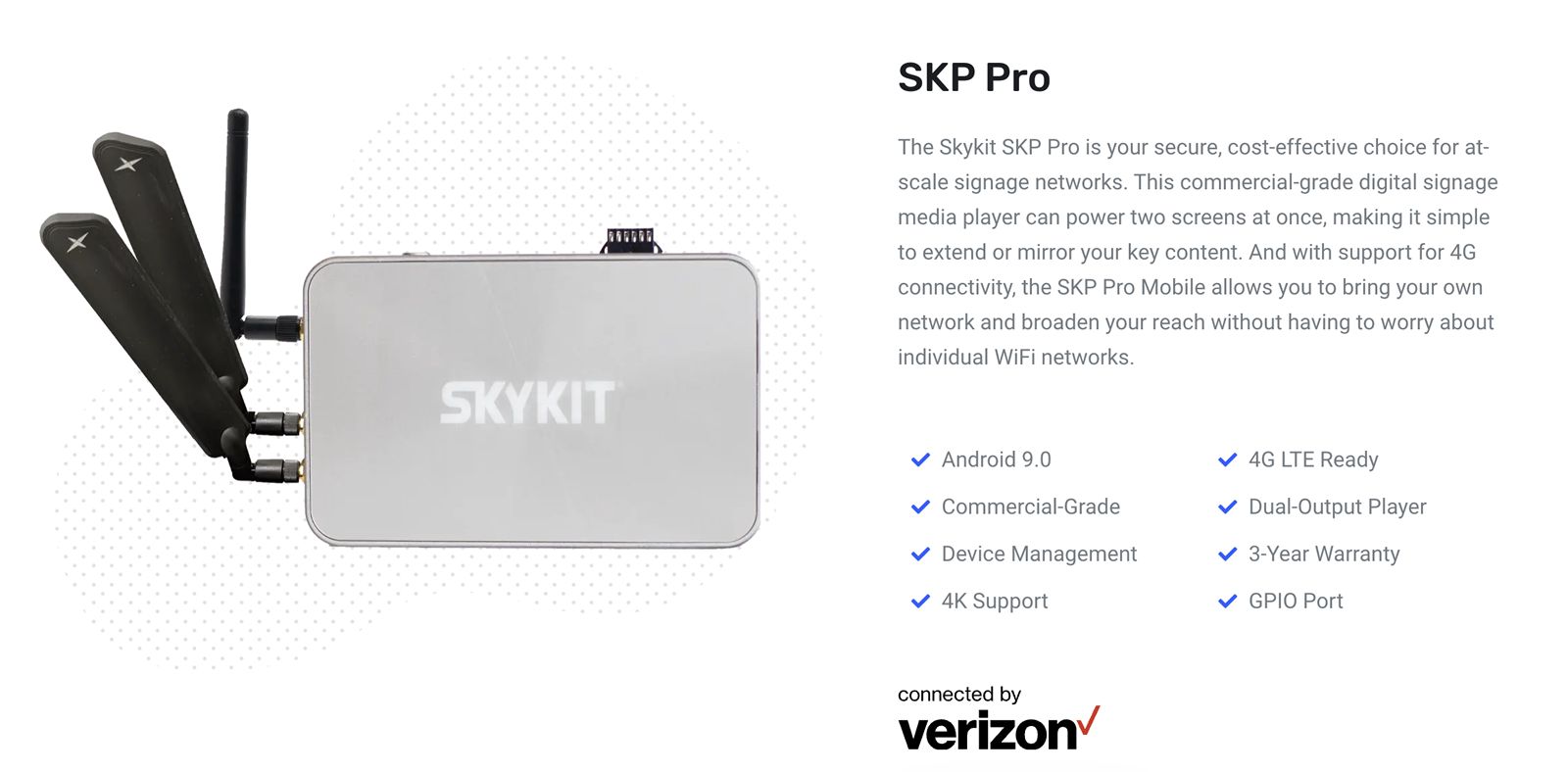 Source Inc. élabore des stratégies sans fil holistiques pour les clients de Verizon Business et a aidé des milliers de clients à se connecter au réseau de Verizon en offrant une intégration transparente du réseau sans fil et des solutions IoT. Dans le cadre de ce partenariat, Source et Skykit utiliseront le réseau Verizon pour favoriser l’adoption des solutions d’affichage numérique innovantes de Skykit.