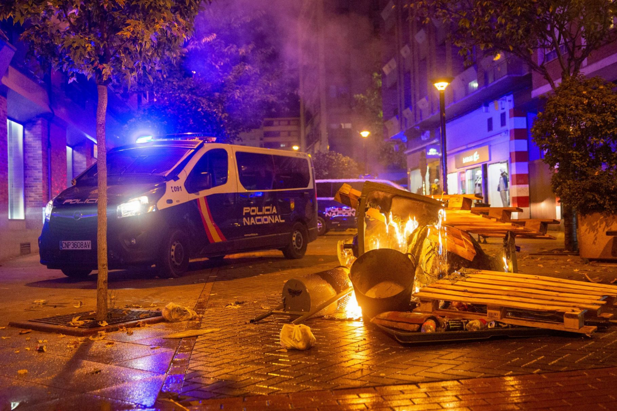 Quelque 150 radicaux, dont beaucoup sont jeunes, ont organisé des émeutes cet après-midi dans le centre de Logroo, où ils traversé et brûlé des conteneurs, jeté des pierres sur la police et coupé la circulation près du siège de l'exécutif de la Rioja et de la délégation gouvernementale à La Rioja.