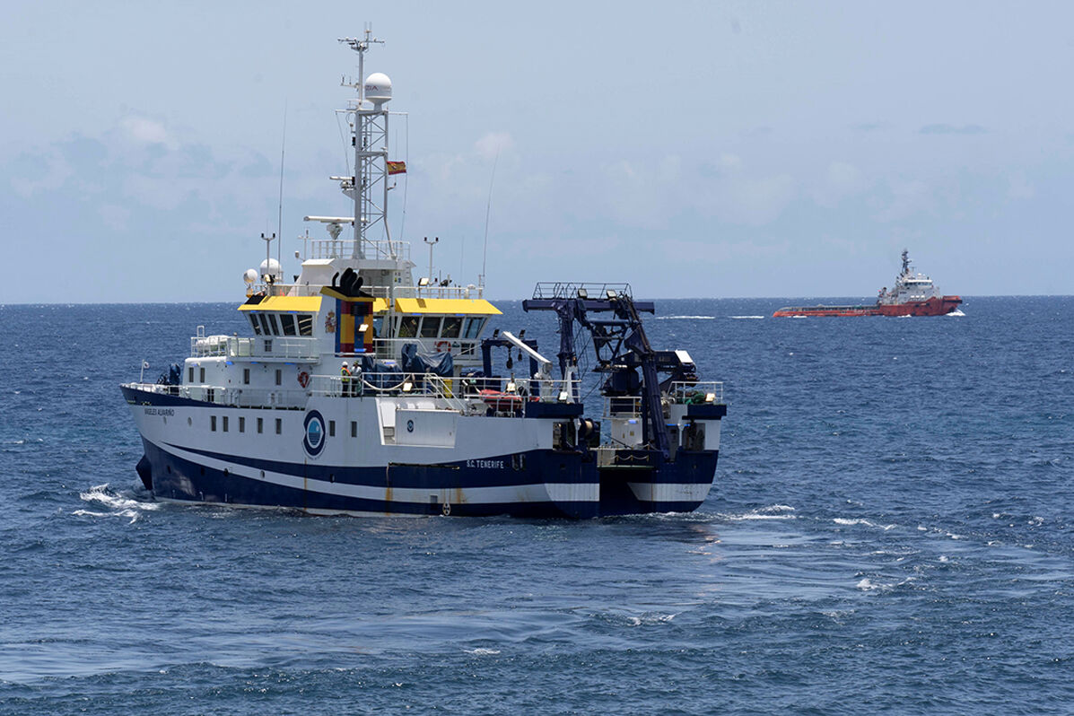 Le navire ‘ngeles Alvario’ pendant les travaux de recherche.Image de balise Miguel BarretoEFE