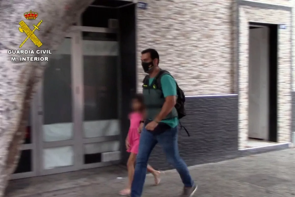 Un agent de la garde civile prend la mineure après l'arrestation de son père.