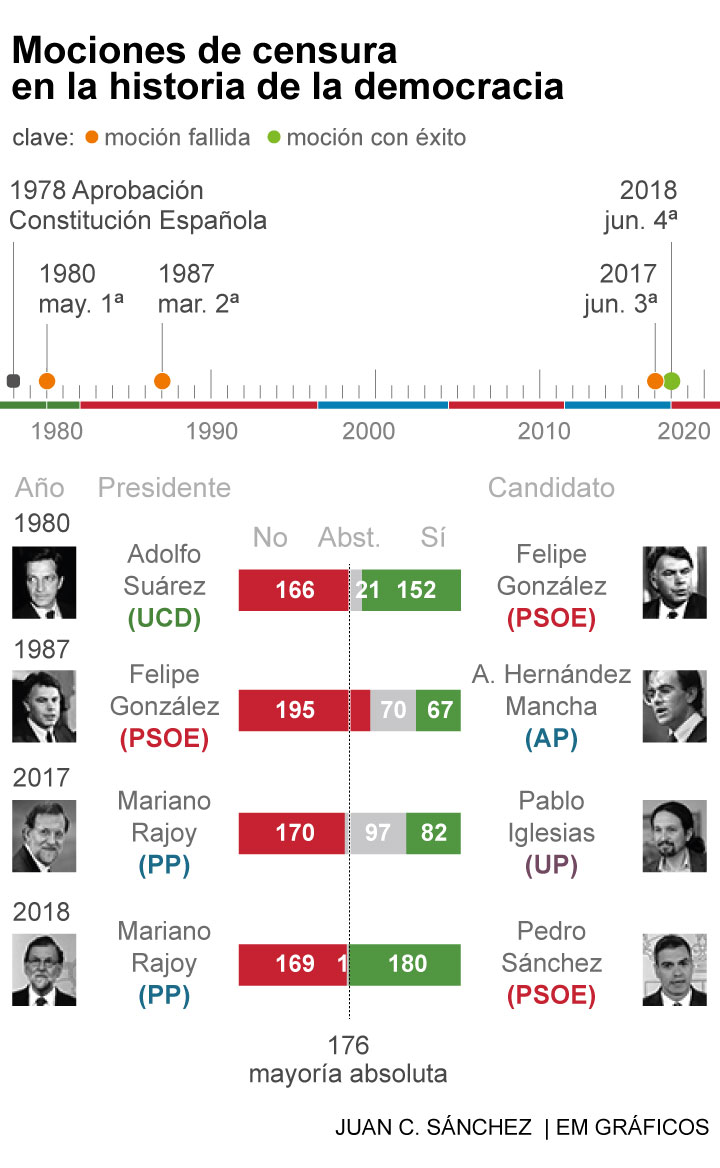 Dans le même esprit, le vice-président de l'Action politique de Vox, Jorge Buxad: "Je suis convaincu qu'il n'y aura pas que 52 voix en faveur de la motion de censure", et a insisté sur le fait que "s'il n'y a que 52" soutiens (ceux correspondant aux députés Vox) ce sera un signe que "le reste du Congrès préfère Sánchez et Iglesias avant de changer le Gouvernement de l'Espagne ".