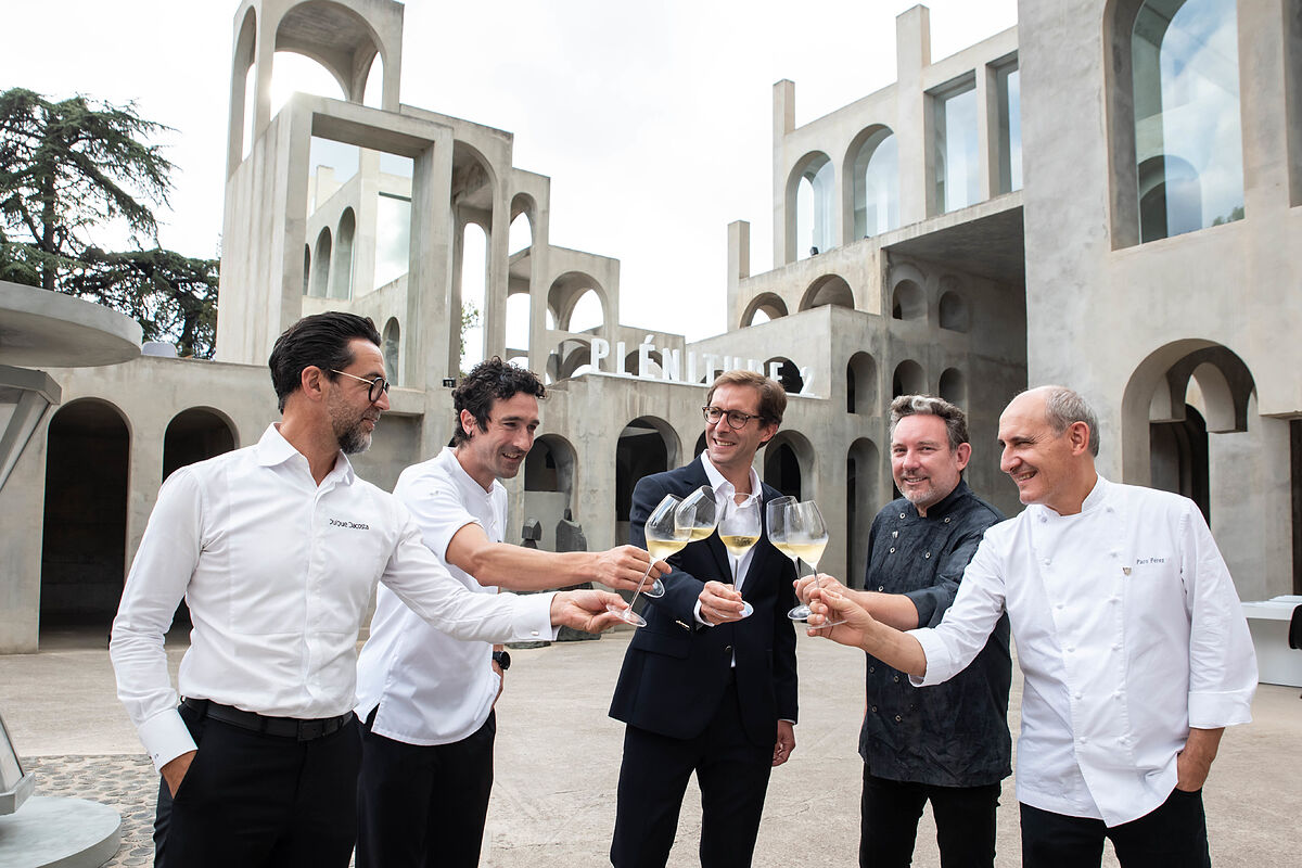 La maison française présente son nouveau champagne dans la spectaculaire maison du sculpteur Xavier Corber avec un quatuor de chefs de luxe : Eneko Atxa, Quique Dacosta, Paco Prez et Albert Adri